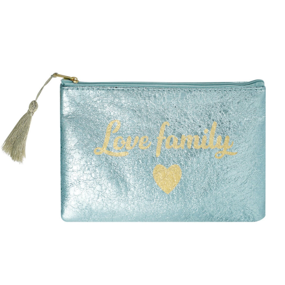 Pochette de maquillage métallique Love Family - bleu