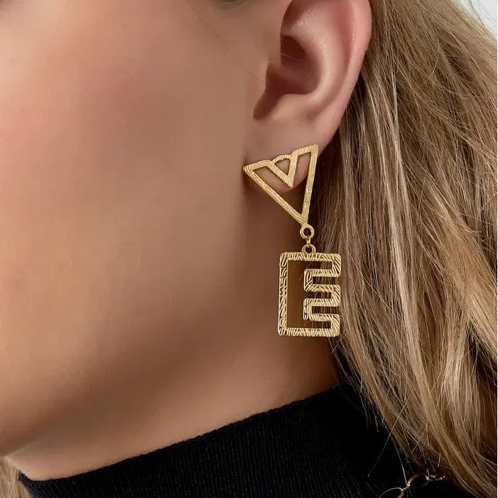 Vous êtes comme nous complètement amoureux de la tendance des boucles d'oreilles.  Alors achetez vite ces jolies boucles d'oreilles dorées avec des cercles et un imprimé vert. Super fun et aussi méga tendance !