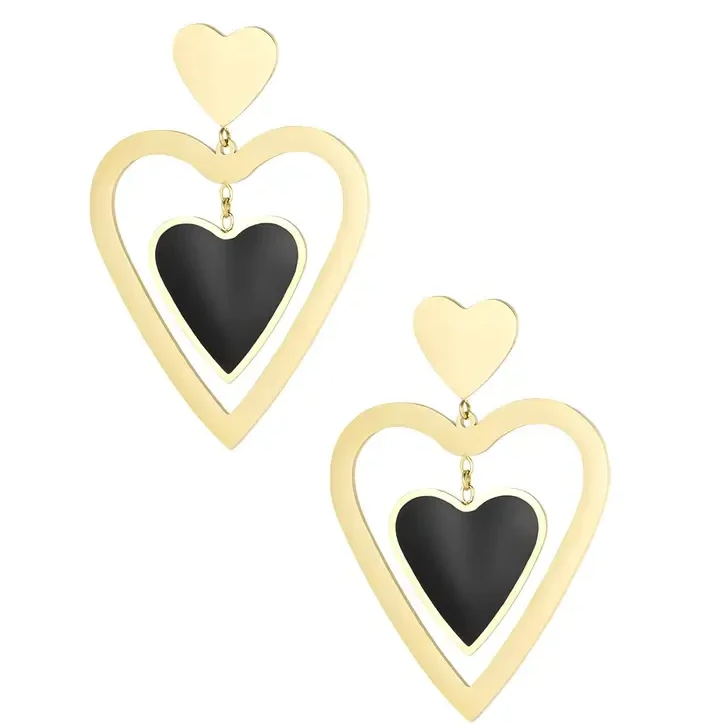 Boucles d'oreilles double coeur - noir