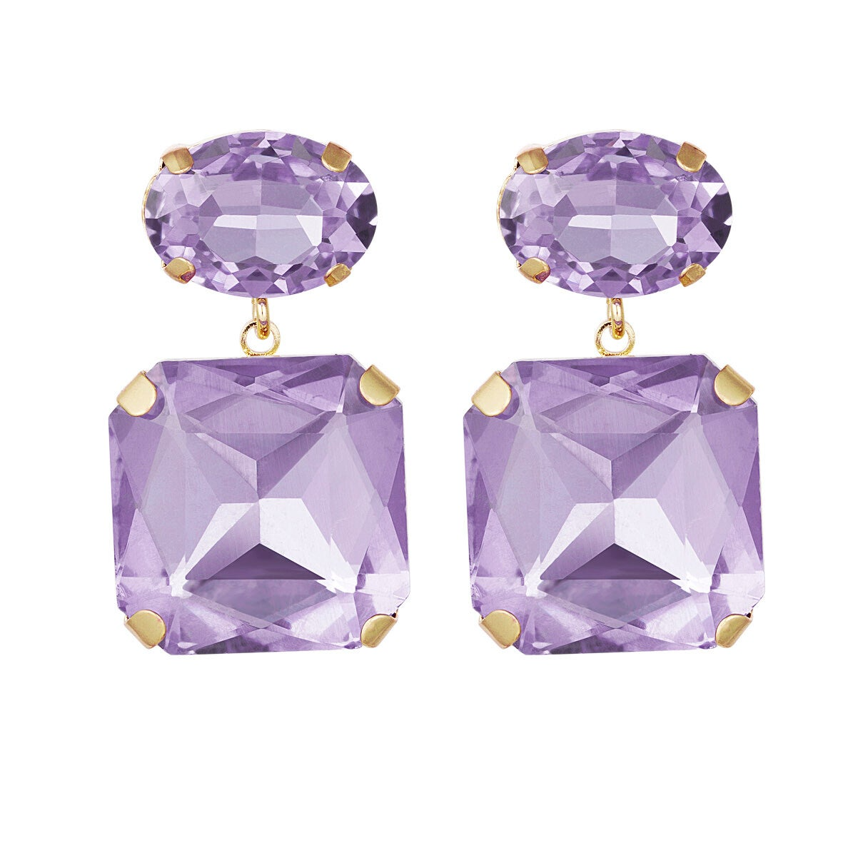 Boucles d'oreilles perles de verre carrées - mauve