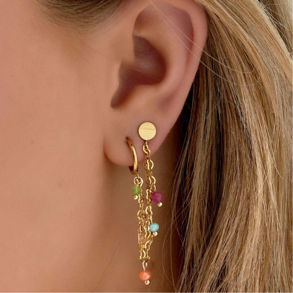 Double Boucles d'oreilles breloque - Doré/coloré