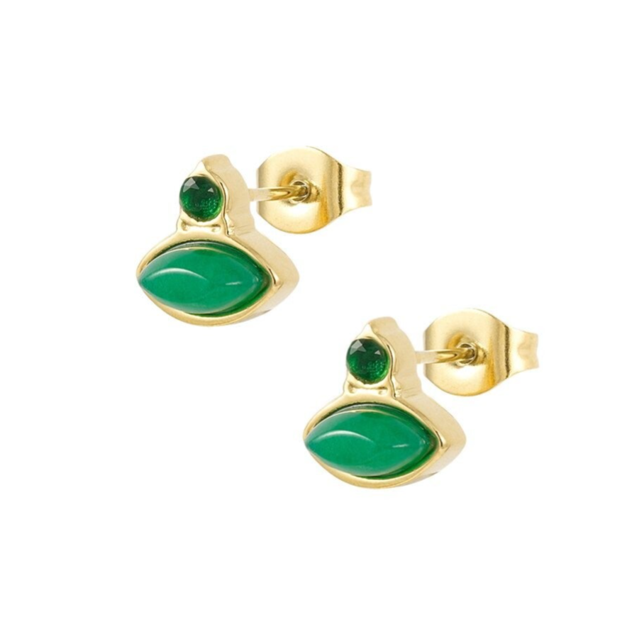 Boucles d'oreilles vintage clous strass - Vert Emeraude