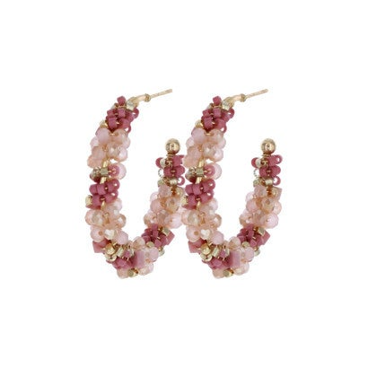 Boucle d'oreille anneaux petites perles - Doré/Rose