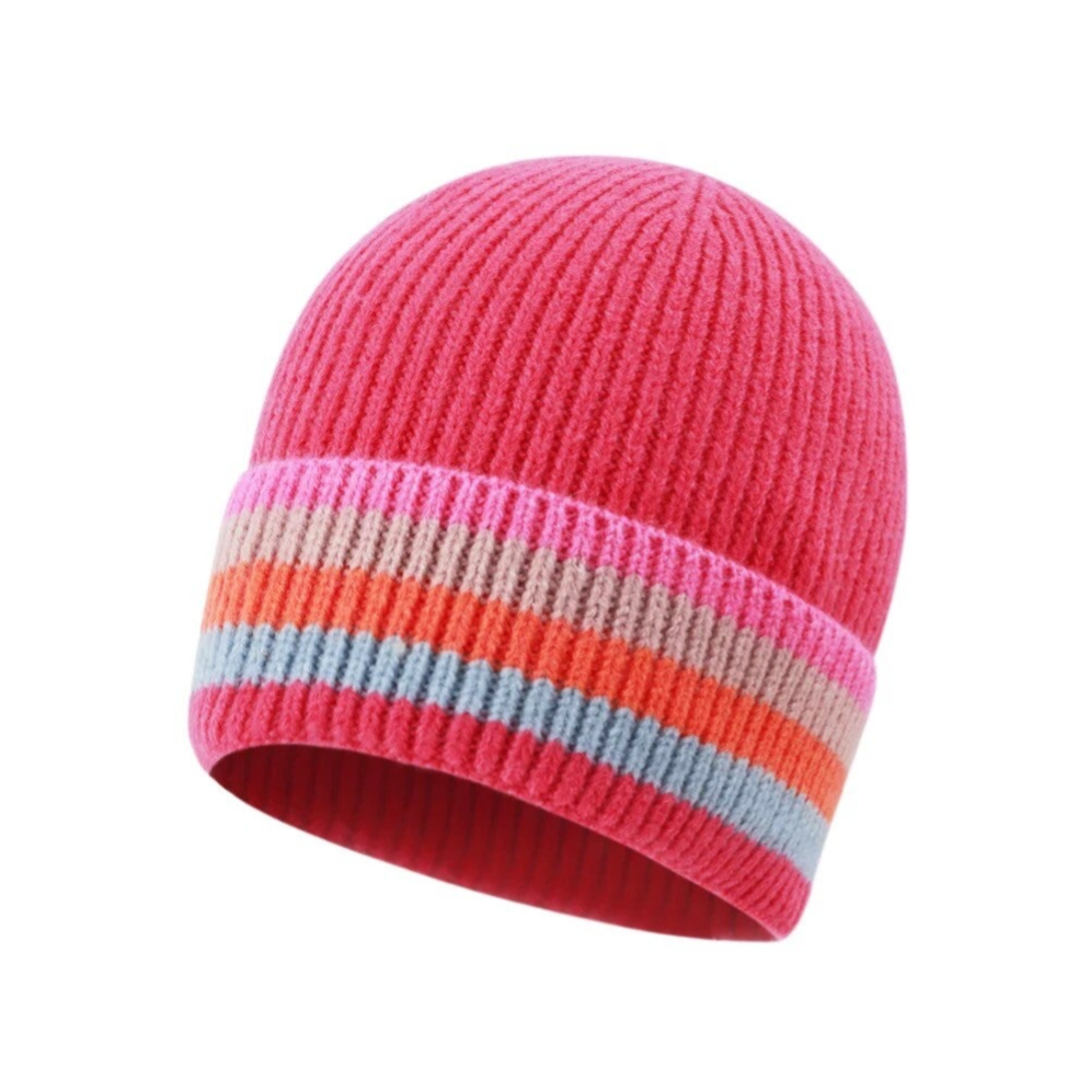 Bonnet à rayures multi - Rose