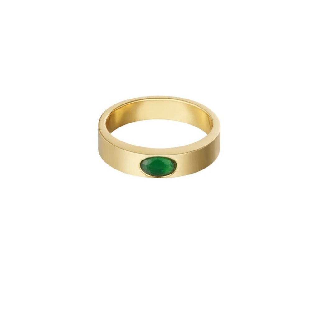 Bague basic avec pierre verte - doré