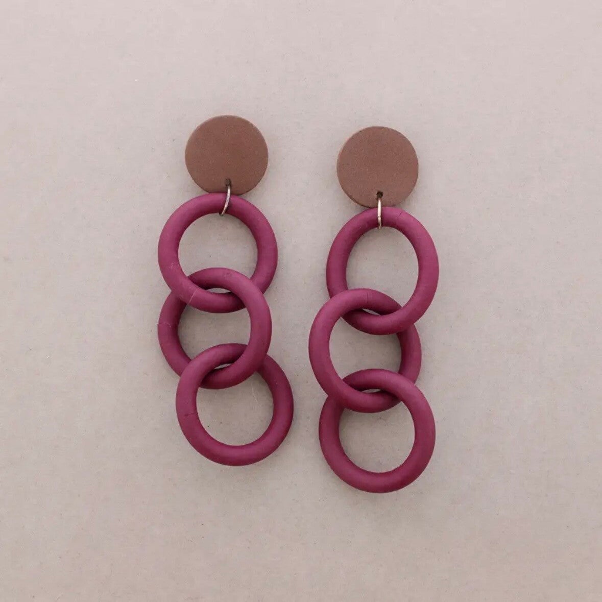 Boucles d'oreilles en mousse avec maillons en caoutchouc - Bordeaux