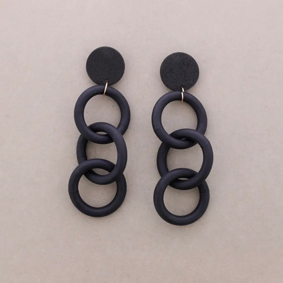 Boucles d'oreilles en mousse avec maillons en caoutchouc - Noir