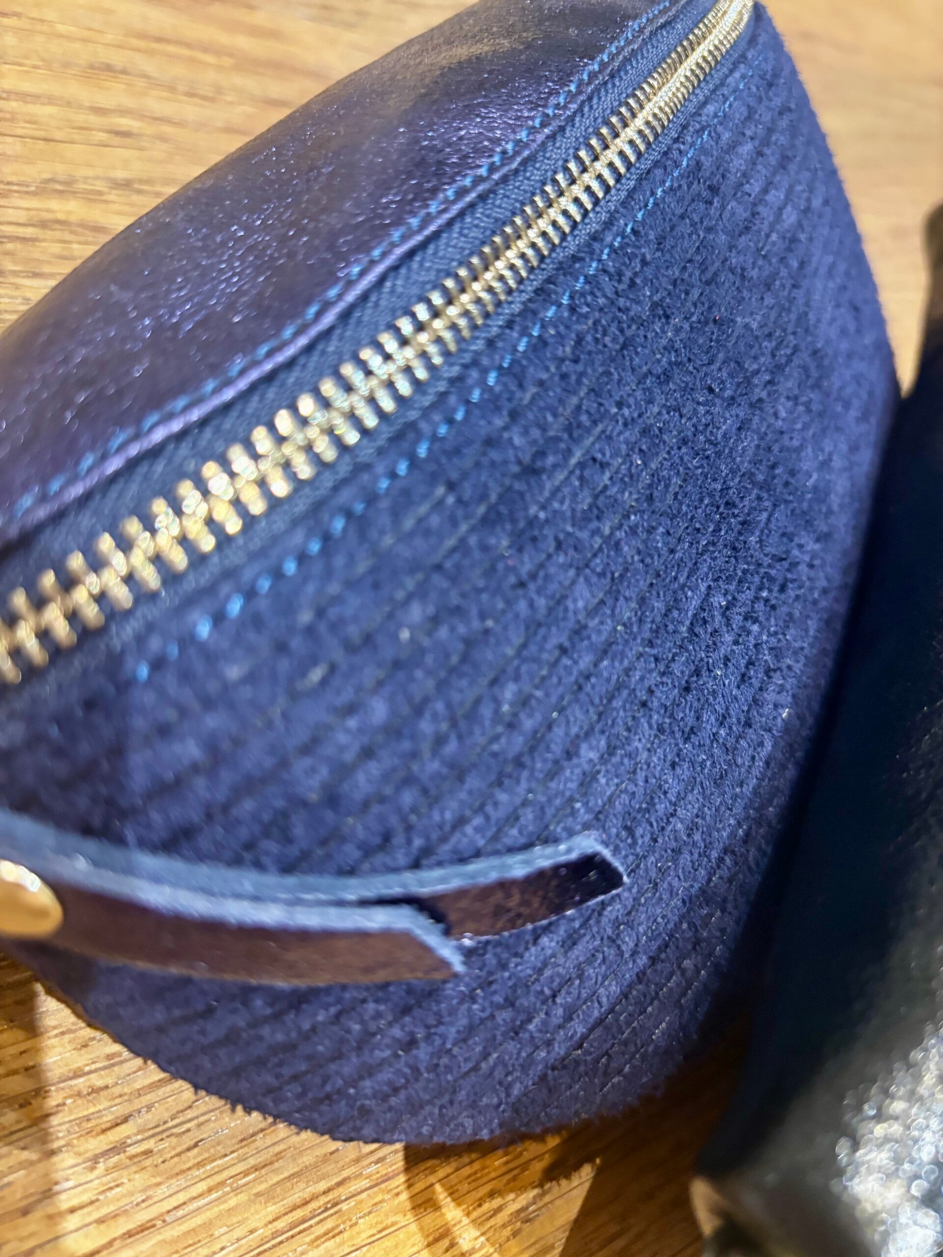 Sac banane en cuir bi-matière - Bleu marine
